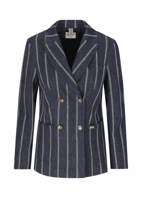 Besonderheiten: Hochwertige Mischung aus den Naturfasern Baumwolle und Leinen, Rückenschlitz, Band im Folklore-Look als Jackenaufhänger, Logoplakette in Hornoptik an der linken Tasche