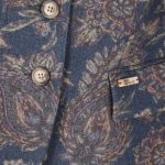 Besonderheiten: Angenehme Wollmischung mit Paisleyprint, Kontraste aus Cord an der Innenseite von Kragen, Knopfleiste und Manschette, personalisiertes Jacquardband als Jackenaufhänger, Logoplakette in Hornoptik an der linken Tasche - Unser Model Chantal ist 1,78 m groß und trägt die italienische Größe 42.