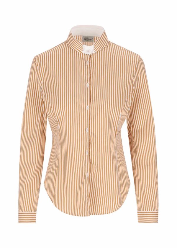 - Diese Bluse im Slim Fit mit doppeltem Stehkragen und durchgehender Knopfleiste besteht aus einer angenehmen Baumwollmischung mit Stretchanteil und ist durch ihre zarten vertikalen Streifen und ihren taillierten Schnitt ein feminines Lieblingsteil.