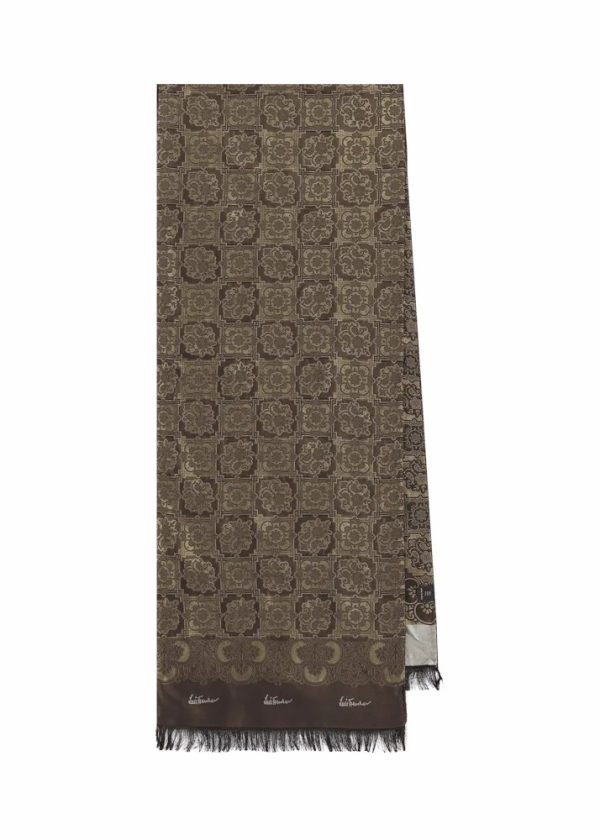 Damen/Herren Jacquard-Seidenschal Lufranzi Olivgrün Dunkelbraun | Luis Trenker Schals & Tücher