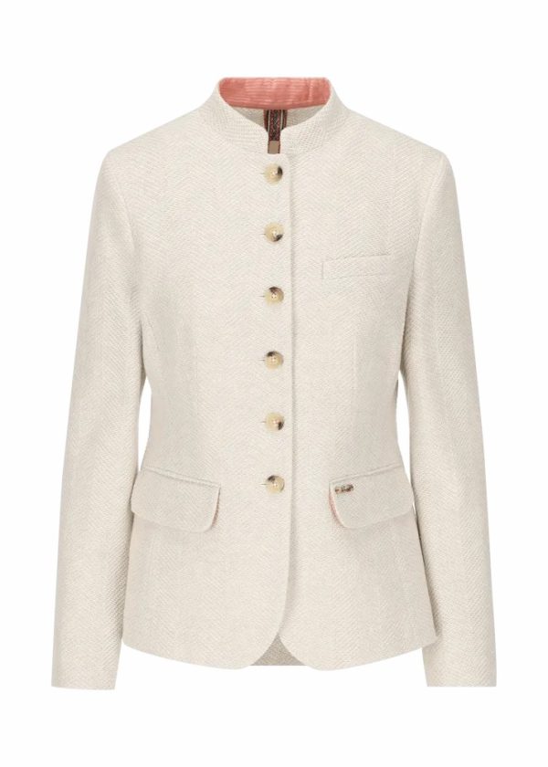 Futter: Halbgefüttert - Besonderheiten: Reine Baumwolle in komfortabler Jersey-Qualität, Cord als Kontraststoff, Band im Folklore-Look als Jackenaufhänger, Logoplakette in Hornoptik an der linken Tasche