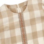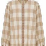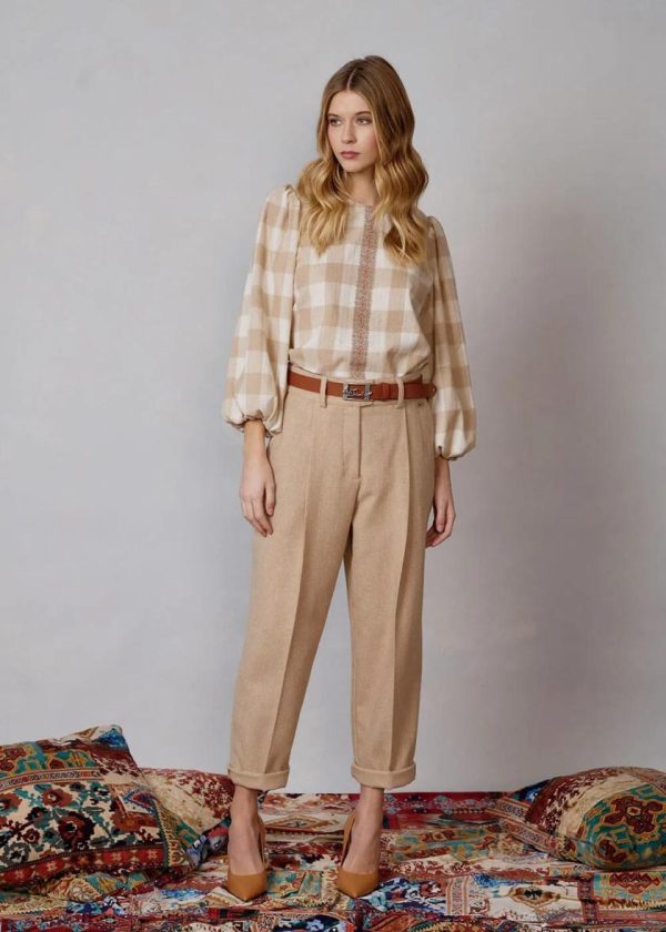 - Diese Bluse aus reiner Schurwolle mit Buffalo-Karomuster und Rundhalsausschnitt bekommt durch ihre Ballonärmel mit betonter Schulter und gerafften Bündchen, sowie ihre Ethno-Stickerei vorne einen verspielt-femininen Charakter.