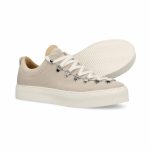 - Dieser handgefertigte Sneaker mit Plateausohle besteht außen aus Baumwollcanvas und Wildleder, während sein Innenfutter aus weichem Leder gefertigt ist. Die metallischen Ösen im Bergschuh-Stil verleihen ihm alpinen Charme, mit seiner Plateausohle und seiner atmungsaktiven Kork-Innensohle hebt er den Komfort auf ein neues Level.