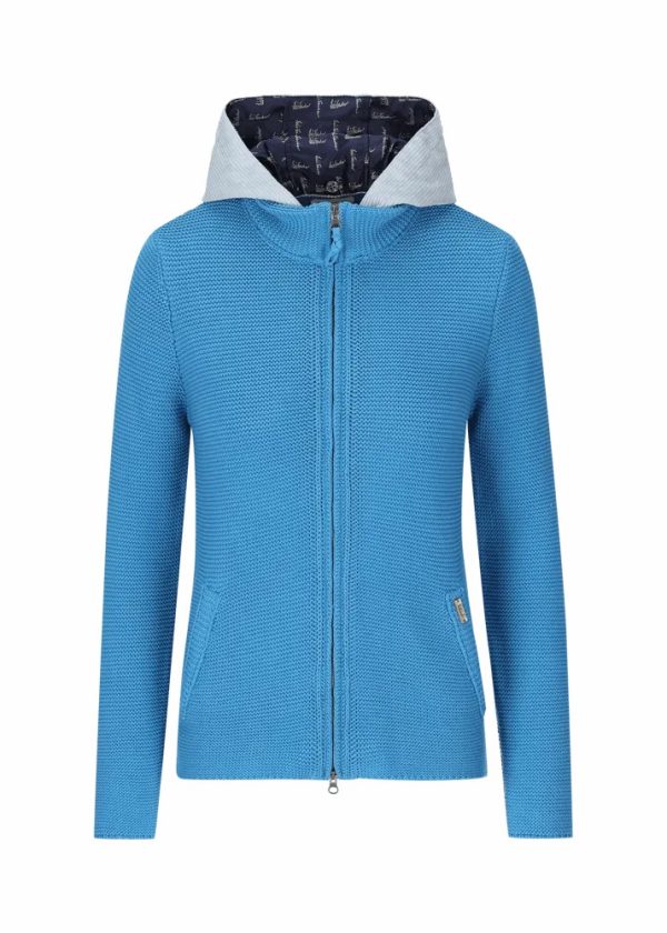 Besonderheiten: Extra Tragekomfort, traditionell im Stil der „Sarner Janker“ links gestrickt, abnehmbare Kapuze im Kontraststoff mit Innenseite aus Jacquard mit All-Over-Logo, Logoplakette in Hornoptik an der linken Tasche
