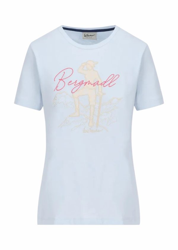 Ausschnitt: Rundhalsausschnitt - Besonderheiten: Extra Tragekomfort, Schriftzug „Bergmadl“ als Stickerei, Motiv einer Bergsteigerin in Mischtechnik aus gestickten und gedruckten Elementen