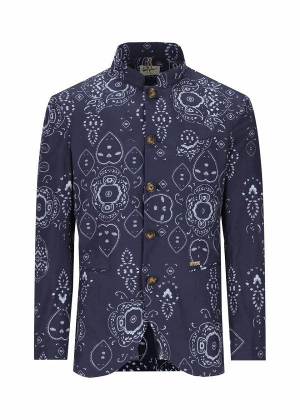 - Dieser ungefütterte, in Italien gefertigte Blazer im Regular Fit mit Stehkragen ist dank seinem leichten Hemdenstoff aus reiner Baumwolle wie gemacht für heiße Tage. Der exklusiv für Luis Trenker designte All-Over-Print mit Bandana-Motiv macht ihn zum extravaganten Hingucker.