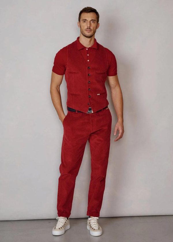 Besonderheiten: Charakteristischer Cord aus reiner Baumwolle, Knöpfe aus Echthorn, abnehmbare Kette als Blickfang an den Gürtelschlaufen, Saumumschlag, Logoplakette in Hornoptik an der linken Taille - Unser Model Federico ist 1,88 m groß und trägt Größe 50.