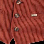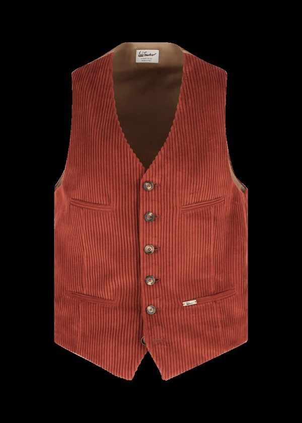 - Diese in Italien gefertigte, einreihige Weste im Regular Fit mit V-Ausschnitt aus reinem Baumwollcord ist am Rücken, der aus Viskosesatin besteht, in der Weite regulierbar. Sie hat eine einreihige 6-Button-Front mit Knöpfen aus Echthorn, sowie vier Leistentaschen.