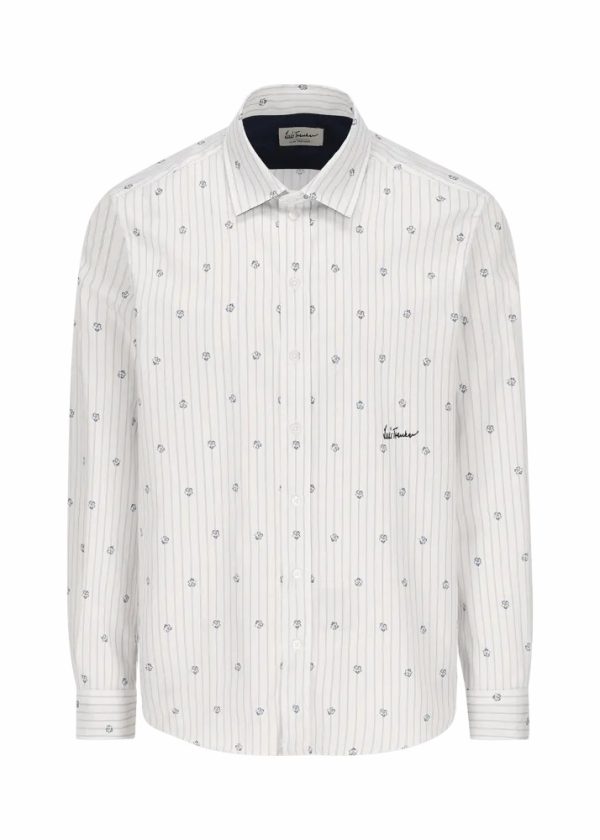 Knopfleiste: Durchgehende Knopfleiste - Besonderheiten: Detailverliebter Print mit Nadelstreifen und kleinen Blumen, gesticktes Luis Trenker Logo