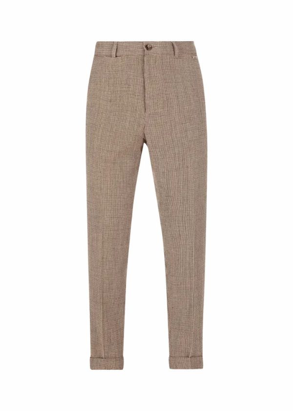- Diese lange Hose im Regular Fit mit etwas weiterem Bein, Bügelfalte und Saumumschlag besteht aus einer angenehmen Mischung der beiden Naturfasern Leinen und Baumwolle mit Hahnentrittmuster.