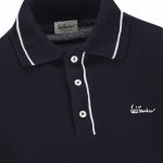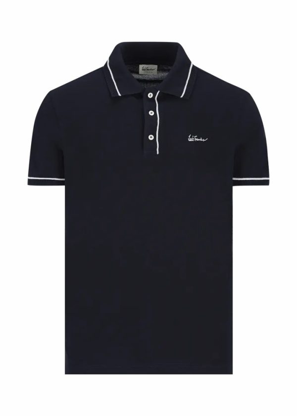 Kragen: Polo-Kragen mit kurzer Knopfleiste - Besonderheiten: Extra Tragekomfort, Knöpfe aus pflanzlichem Elfenbein, Streifen in Kontrastfarbe an Kragen und Ärmeln, kleine Logostickerei an der linken Brust