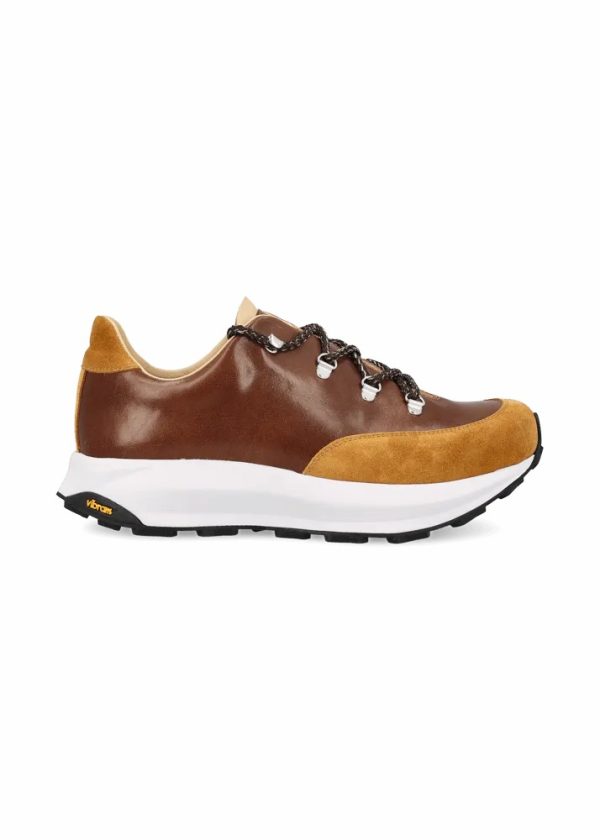 - Dieser handgefertigte Sneaker präsentiert sich im hochwertigen Materialmix aus Glatt- und Wildleder. Die metallischen Ösen im Bergschuh-Stil verleihen ihm alpinen Charme, mit seiner ergonomisch geformten Vibram-Plateausohle hebt er den Komfort auf ein neues Level.