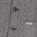 Besonderheiten: Reine Schurwolle in erlesener Qualität, zeitloses Fischgrätmuster, durch Schnalle am Rücken in der Weite regulierbar, Logoplakette in Hornoptik an der linken Tasche