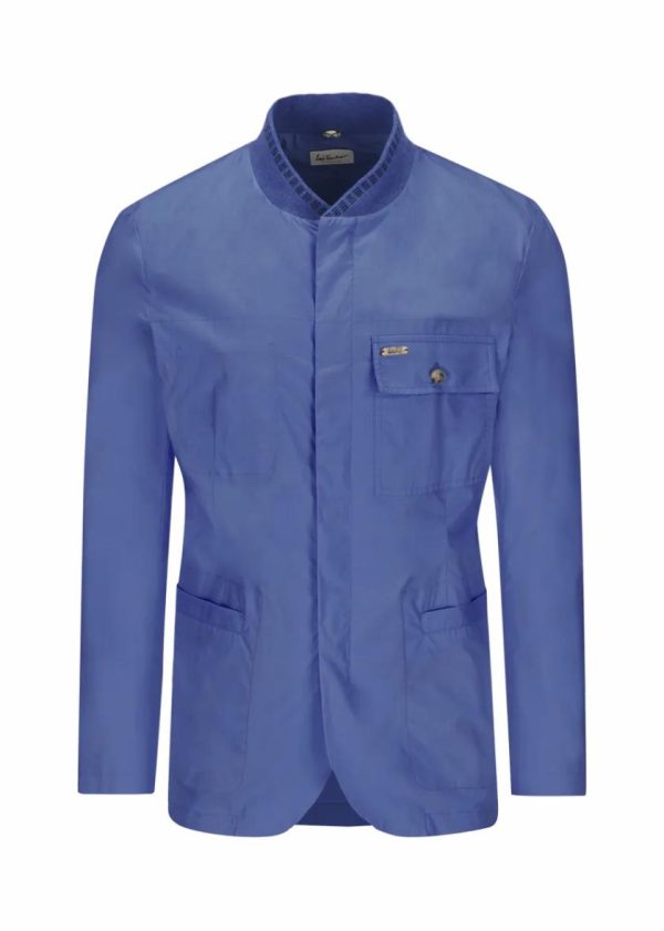 - Zwei Paspeltaschen und eine aufgesetzte Tasche mit Knopfverschluss an der Brust, Zwei-Wege-Reißverschluss und Druckknöpfe